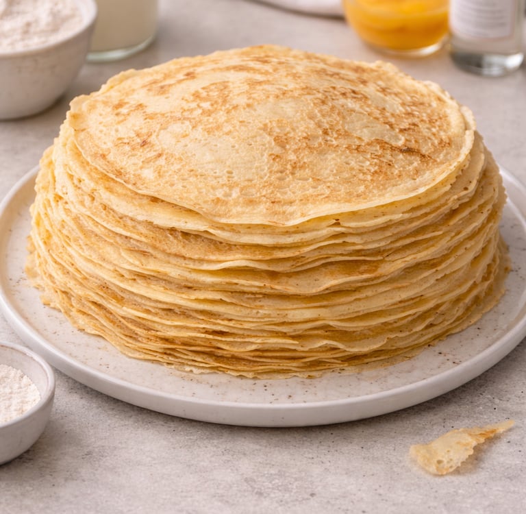 Une pâte simple, sans sucre, qui s’adapte à tout : sucré ou salé. Le repos est le vrai secret de ces crêpes légères… et de leur texture parfaite.
