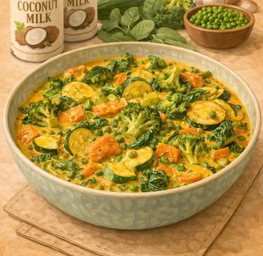 Verser le lait de coco, mélanger et laisser mijoter à feu doux 10 à 15 minutes.