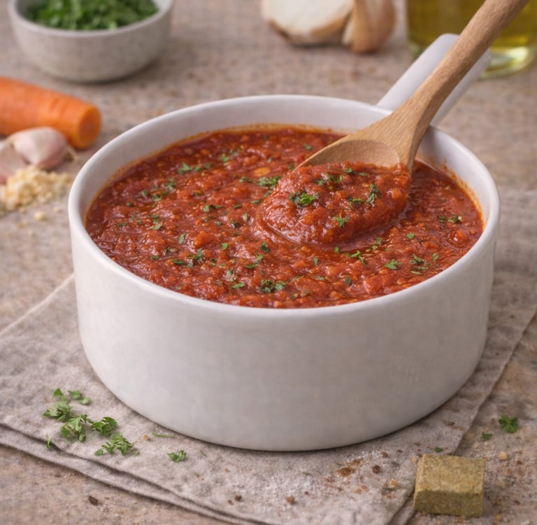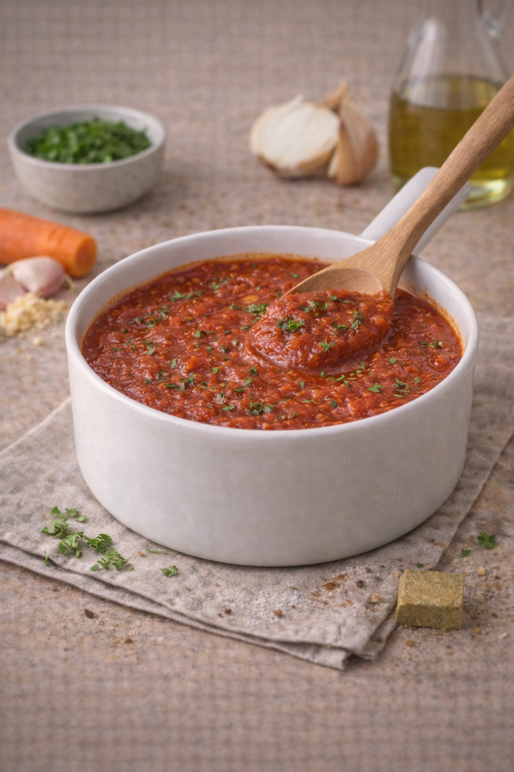 Émincer l’ail, l’oignon et la carotte. Les faire revenir dans un filet d’huile d’olive pendant 10 minutes.