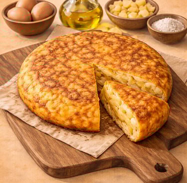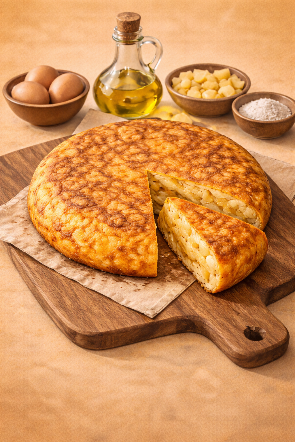 En Espagne, il y a deux sortes de tortilla. La « française » sans pommes de terres et “l’espagnole » avec des pommes de terres. Et la version hispanique a deux écoles : ceux qui rajoutent des oignons aux pommes de terres et ceux qui n’en mettent pas. Ainsi, lorsque l’on évoque ce plat, la question qui vient immédiatement est « ¿con o sin ? » Ici, la version « avec » mais, vous l’aurez compris, on peut la faire « sans ».