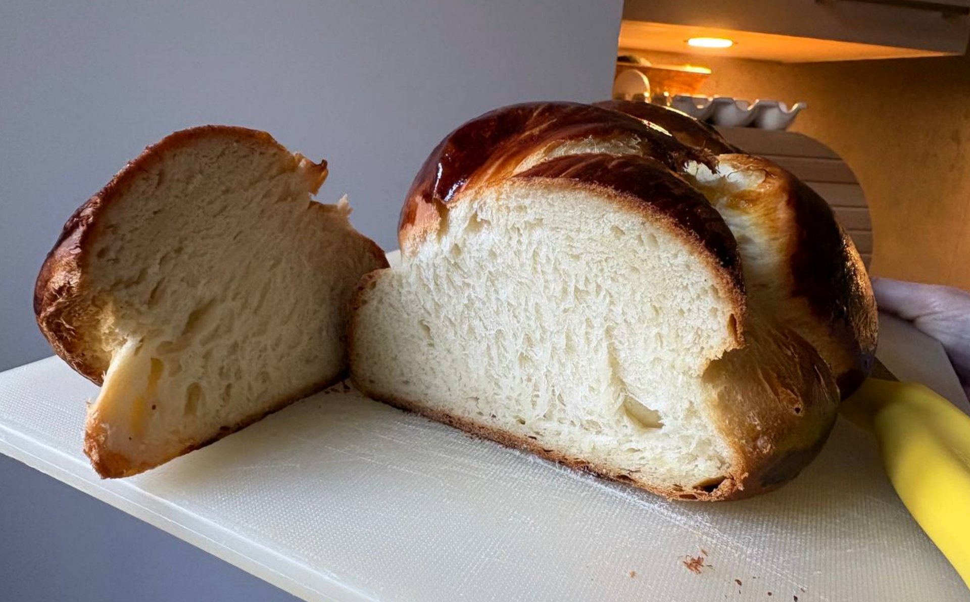 Sortir la tresse du four et laisser tiédir avant de la couper.
