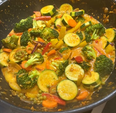 Ajouter les courgettes coupées en demi-rondelles, les fleurettes de brocoli et faire revenir 10 minutes.